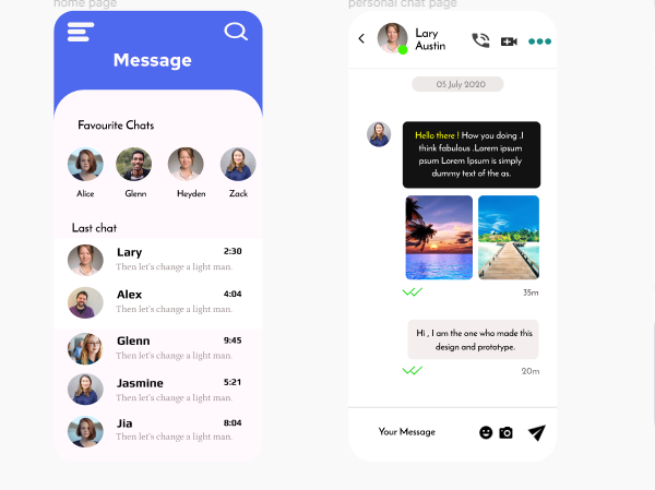 Messenger Ui interface for Mobile devices. Fully prototyped and this design made in figma.