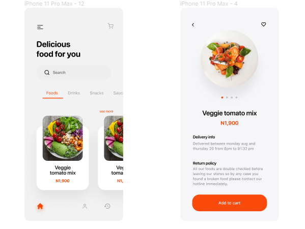 This is the markup for a food restaurent app made in figma, fully prototyped.